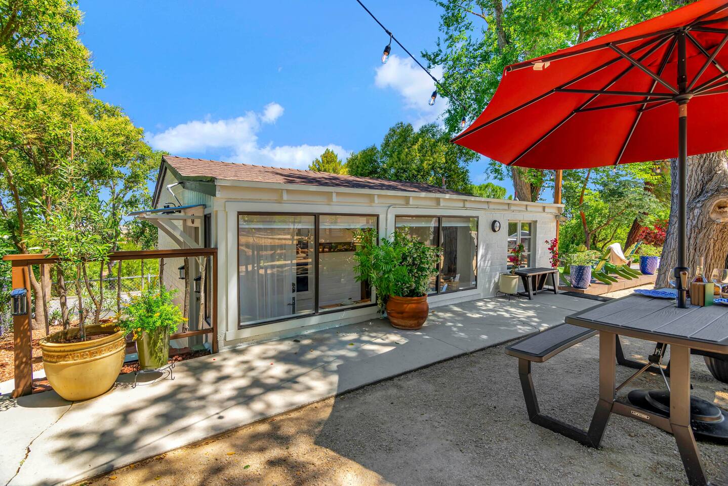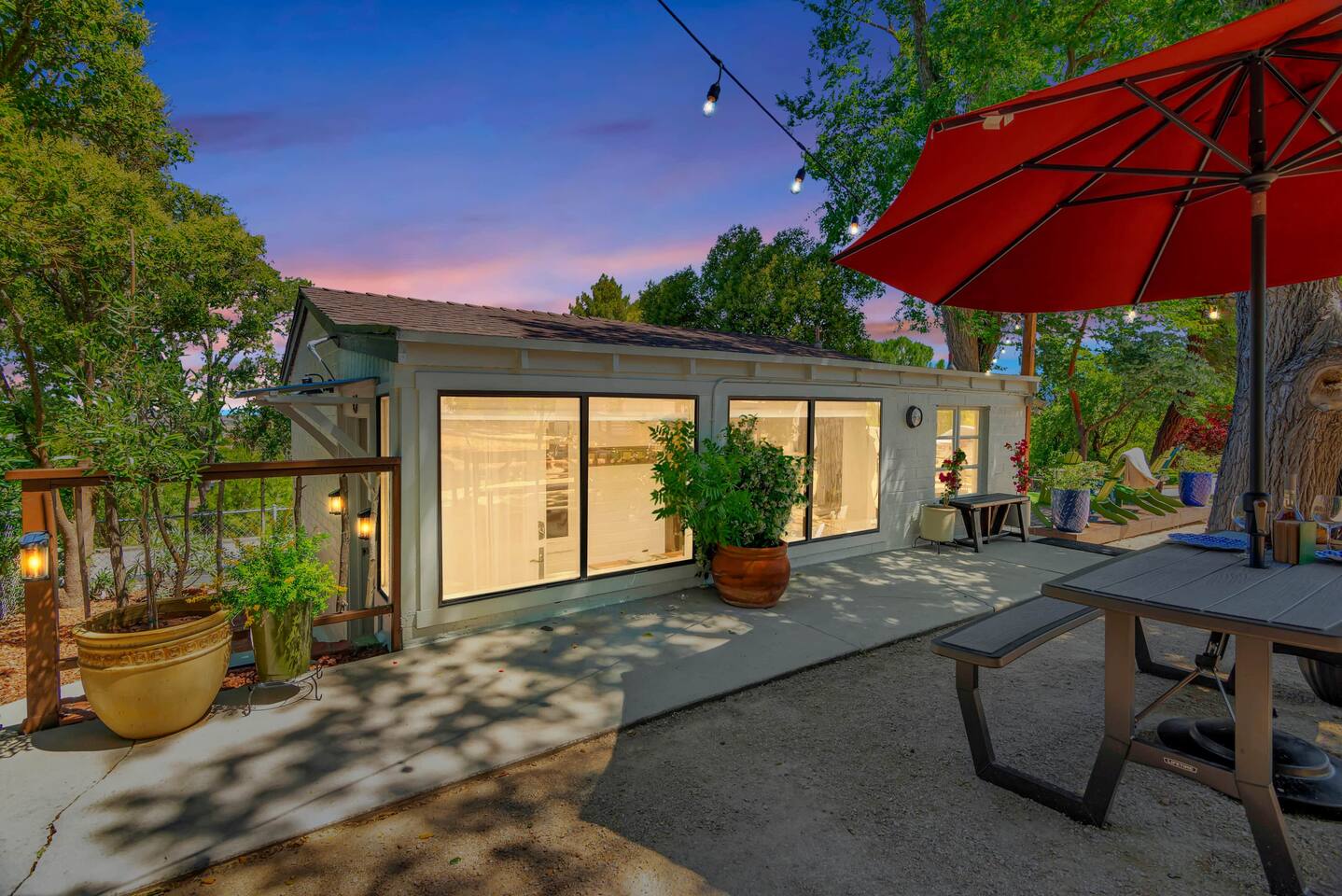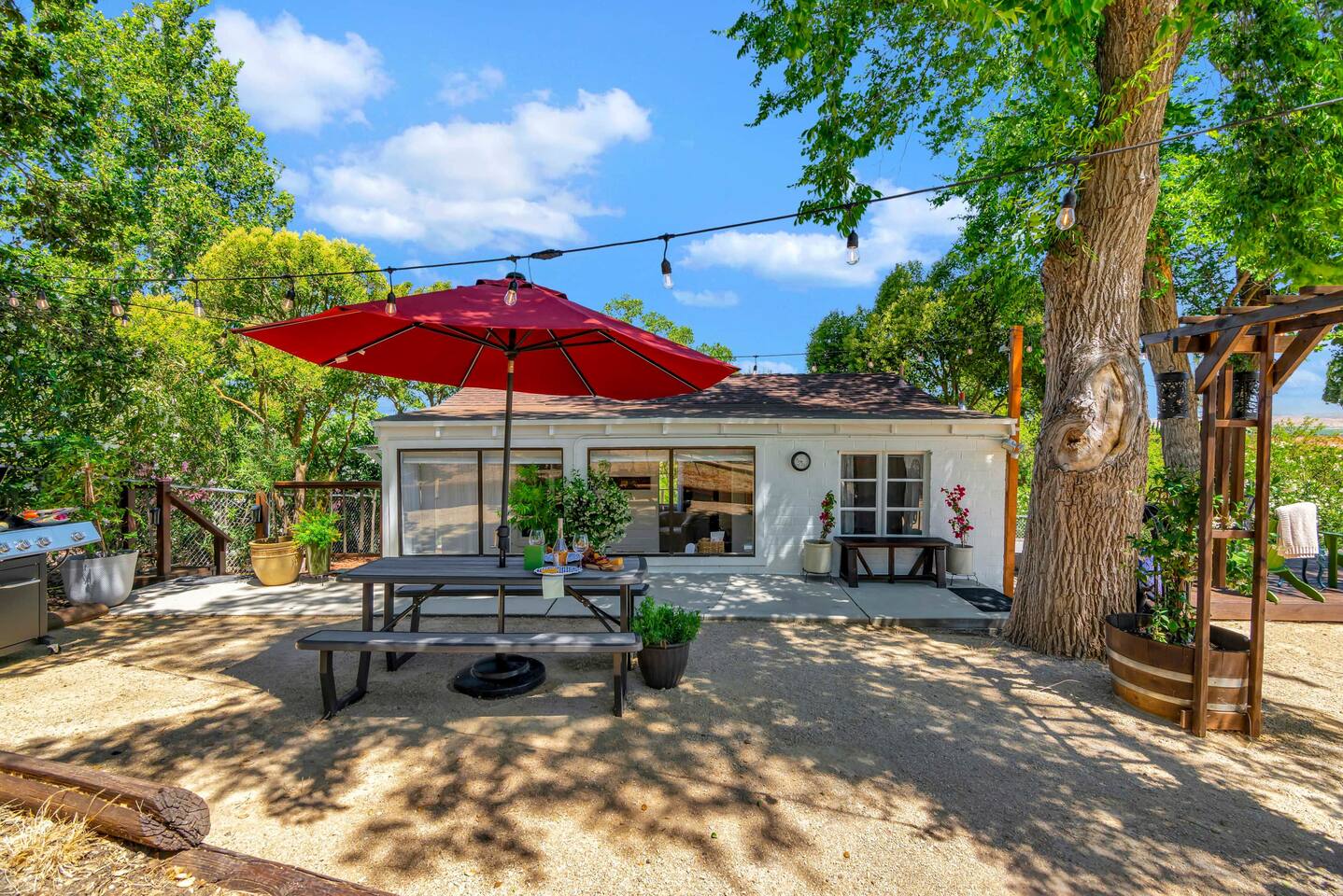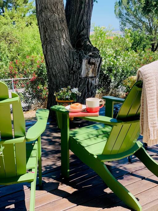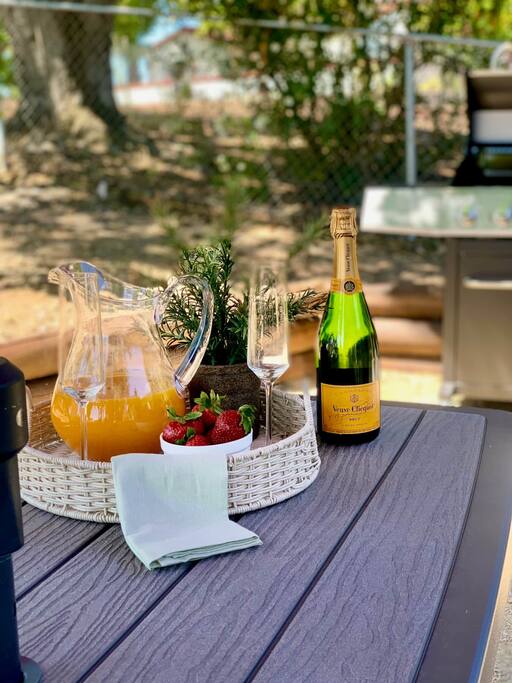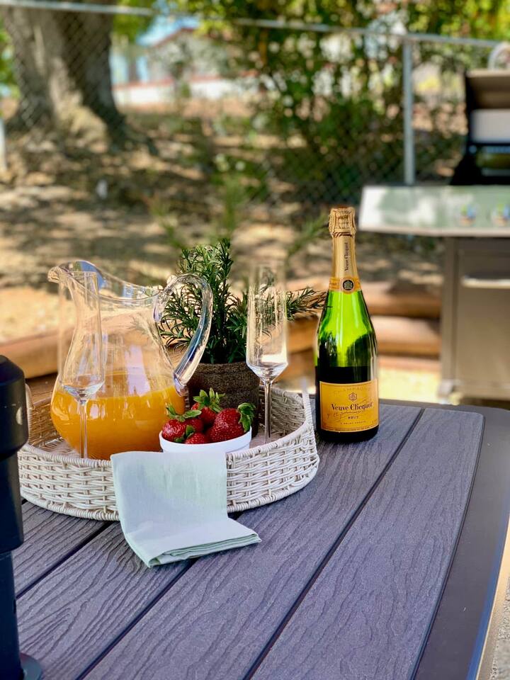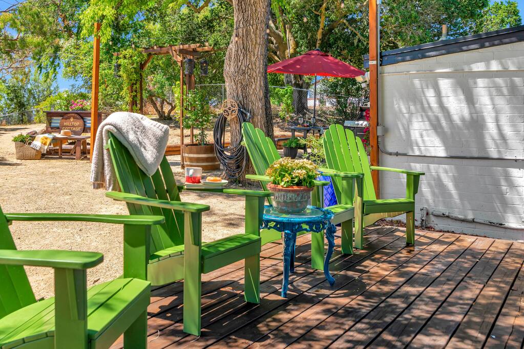 This inviting 1 bedroom cottage features a dedicated bar space for dining, a kitchenette and a bedroom with an attached bathroom. The kitchenette features a hot plate, mini fridge, large sink and all the kitchenware needed to enjoy a meal in. Small appliances include a Keurig coffee maker, microwave, toaster and hot water kettle. Enjoy a cozy breakfast at the dining bar overlooking the serene outdoors. The bedroom has a king size bed, smart TV, a reading nook with two comfy club chairs, a dedicated workspace and ensuite bathroom. The bathroom is equipped with a hair dryer, luxury towels, shampoo/conditioner/body wash, hand soap, makeup remover towels and more. The outdoor space is expansive! Featuring a firepit underneath festive string lights which is the ideal spot to open a bottle of wine or BBQ dinner at the adjacent gas BBQ. Or sit back on the deck with Adirondack chairs or the picnic table overlooking the stunning view from the hilltop. The best place to watch the sunset! Finish the evening with a round of corn hole. Note: No washer/dryer Amenities: Complimentary Wi-Fi, firepit, corn hole, board games and private (gated) parking. Location: This home is located five minutes from the downtown Paso Robles square. A few miles away from the best craft breweries, wine tasting rooms, charming coffee shops, restaurants and local gift shops. Explore all that our town has to offer from the convenience of this home. *Laundromat 2.2 miles away. Pet Policy: We have a strict NO pet policy here. Please leave your furry friends at home. Any guests who do not abide by this rule will be asked to leave or incur a fine of $500. ALL Front Porch Properties include these LUXE amenities: Kitchen: Coffee, creamer, sugar, tea, olive oil, spices, Saran Wrap, foil, Ziploc bags and dish sponge. Bathroom: Shampoo/conditioner, hand soap, body wash, paper products, Q-tips, cotton balls, towels, makeup remover towels, toothbrushes. Bedroom: Linens and extra blankets. Extras: Our curated booklet of Nicole + Tressa's favorite wineries (there are 300+ to explore), restaurants, breweries, coffee shops and activities! Check-in/check-out instructions. *** Keyless door code for an easy check in. You will receive the code via email prior to check-in. We are a local mother/daughter duo who want you to experience the BEST our town has to offer. Please let us know if you need anything at all during your stay. We hope you come and visit again soon! Short-Term Rental Permit No. STR23-0015