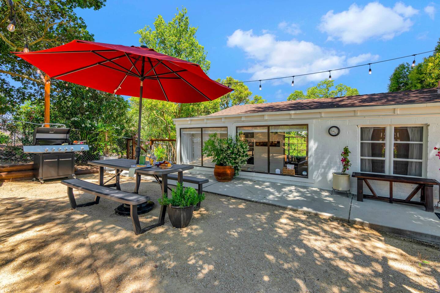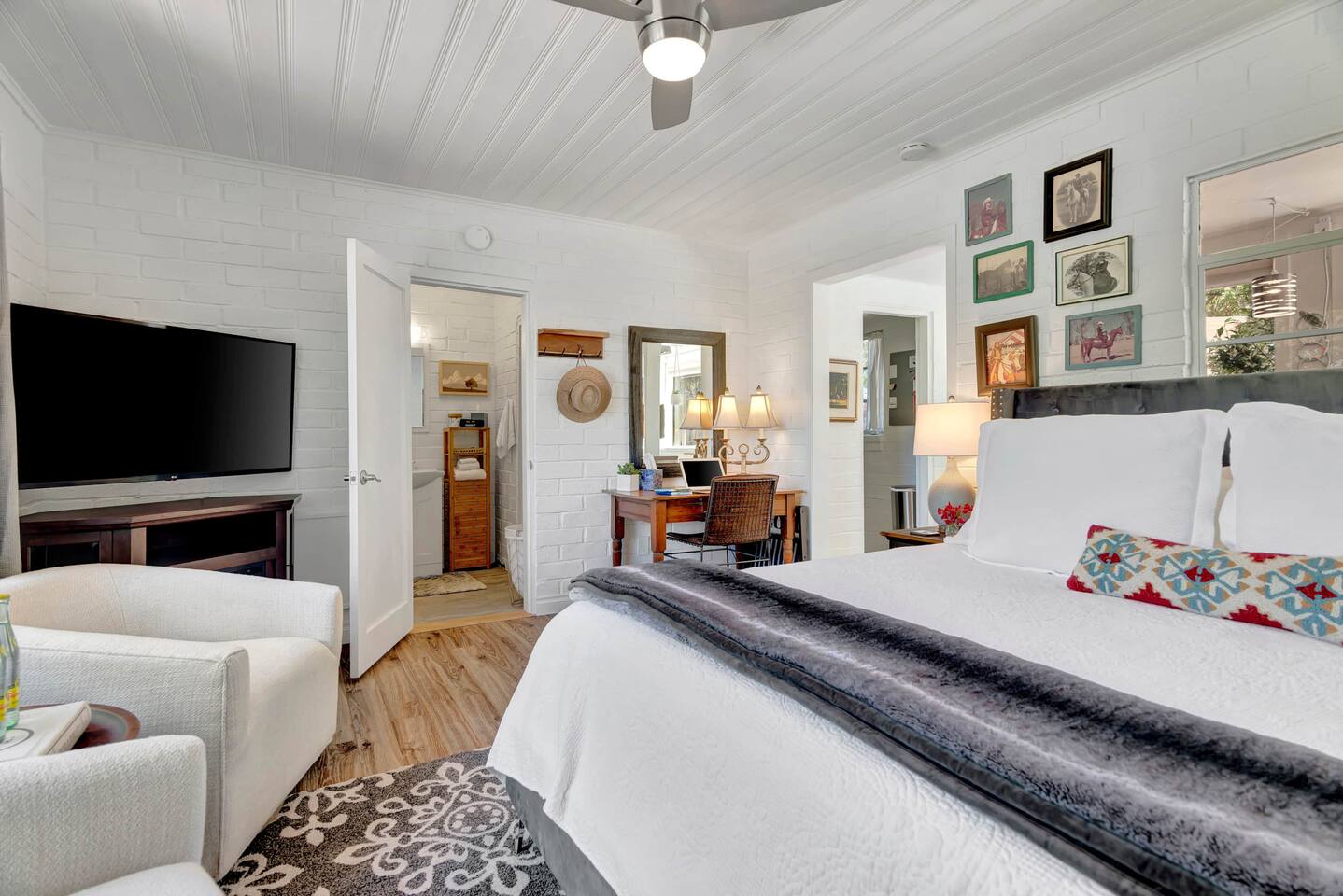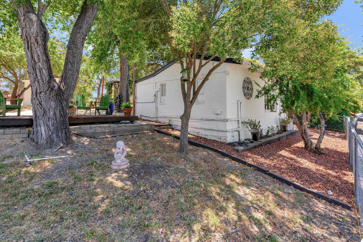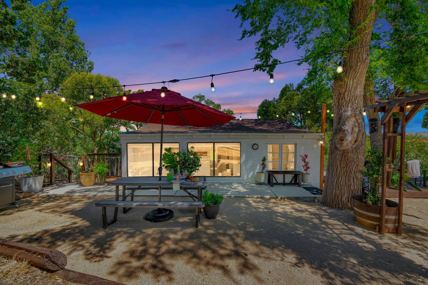 This inviting 1 bedroom cottage features a dedicated bar space for dining, a kitchenette and a bedroom with an attached bathroom. The kitchenette features a hot plate, mini fridge, large sink and all the kitchenware needed to enjoy a meal in. Small appliances include a Keurig coffee maker, microwave, toaster and hot water kettle. Enjoy a cozy breakfast at the dining bar overlooking the serene outdoors. The bedroom has a king size bed, smart TV, a reading nook with two comfy club chairs, a dedicated workspace and ensuite bathroom. The bathroom is equipped with a hair dryer, luxury towels, shampoo/conditioner/body wash, hand soap, makeup remover towels and more. The outdoor space is expansive! Featuring a firepit underneath festive string lights which is the ideal spot to open a bottle of wine or BBQ dinner at the adjacent gas BBQ. Or sit back on the deck with Adirondack chairs or the picnic table overlooking the stunning view from the hilltop. The best place to watch the sunset! Finish the evening with a round of corn hole. Note: No washer/dryer Amenities: Complimentary Wi-Fi, firepit, corn hole, board games and private (gated) parking. Location: This home is located five minutes from the downtown Paso Robles square. A few miles away from the best craft breweries, wine tasting rooms, charming coffee shops, restaurants and local gift shops. Explore all that our town has to offer from the convenience of this home. *Laundromat 2.2 miles away. Pet Policy: We have a strict NO pet policy here. Please leave your furry friends at home. Any guests who do not abide by this rule will be asked to leave or incur a fine of $500. ALL Front Porch Properties include these LUXE amenities: Kitchen: Coffee, creamer, sugar, tea, olive oil, spices, Saran Wrap, foil, Ziploc bags and dish sponge. Bathroom: Shampoo/conditioner, hand soap, body wash, paper products, Q-tips, cotton balls, towels, makeup remover towels, toothbrushes. Bedroom: Linens and extra blankets. Extras: Our curated booklet of Nicole + Tressa's favorite wineries (there are 300+ to explore), restaurants, breweries, coffee shops and activities! Check-in/check-out instructions. *** Keyless door code for an easy check in. You will receive the code via email prior to check-in. We are a local mother/daughter duo who want you to experience the BEST our town has to offer. Please let us know if you need anything at all during your stay. We hope you come and visit again soon! Short-Term Rental Permit No. STR23-0015