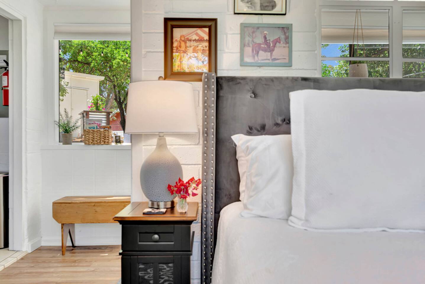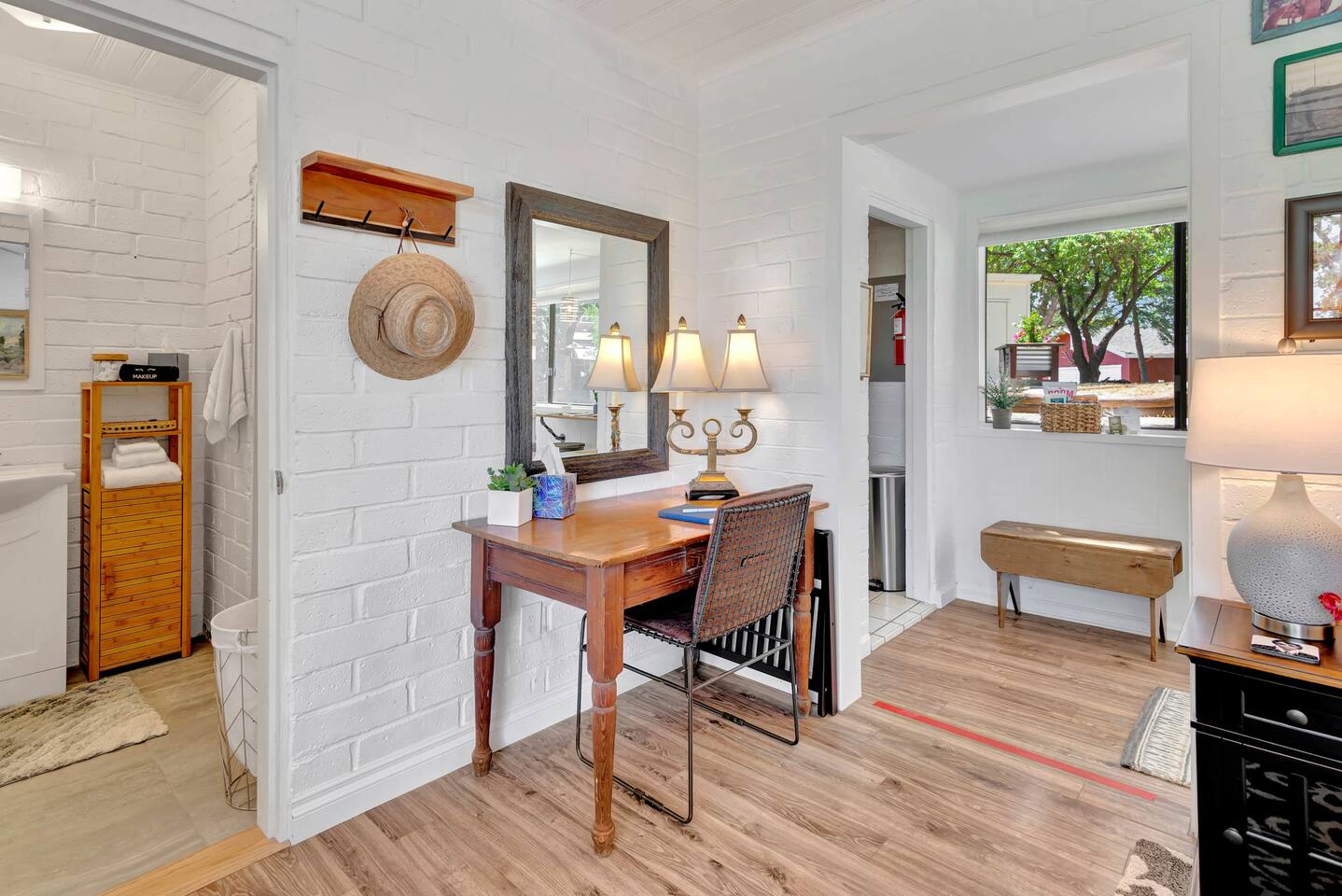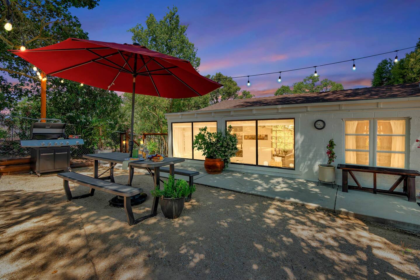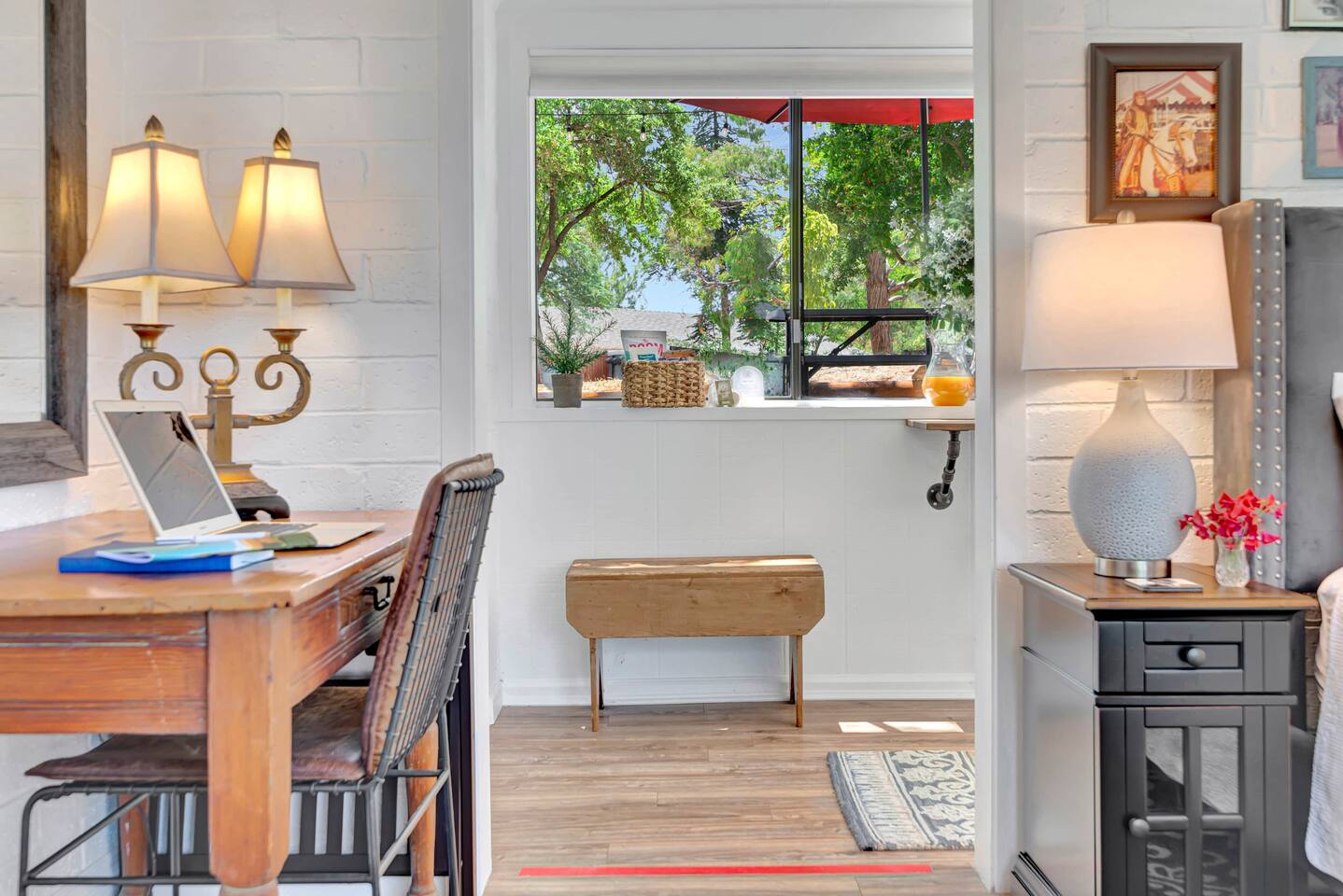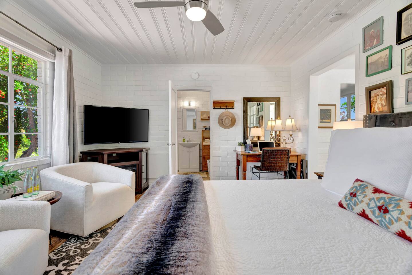This inviting 1 bedroom cottage features a dedicated bar space for dining, a kitchenette and a bedroom with an attached bathroom. The kitchenette features a hot plate, mini fridge, large sink and all the kitchenware needed to enjoy a meal in. Small appliances include a Keurig coffee maker, microwave, toaster and hot water kettle. Enjoy a cozy breakfast at the dining bar overlooking the serene outdoors. The bedroom has a king size bed, smart TV, a reading nook with two comfy club chairs, a dedicated workspace and ensuite bathroom. The bathroom is equipped with a hair dryer, luxury towels, shampoo/conditioner/body wash, hand soap, makeup remover towels and more. The outdoor space is expansive! Featuring a firepit underneath festive string lights which is the ideal spot to open a bottle of wine or BBQ dinner at the adjacent gas BBQ. Or sit back on the deck with Adirondack chairs or the picnic table overlooking the stunning view from the hilltop. The best place to watch the sunset! Finish the evening with a round of corn hole. Note: No washer/dryer Amenities: Complimentary Wi-Fi, firepit, corn hole, board games and private (gated) parking. Location: This home is located five minutes from the downtown Paso Robles square. A few miles away from the best craft breweries, wine tasting rooms, charming coffee shops, restaurants and local gift shops. Explore all that our town has to offer from the convenience of this home. *Laundromat 2.2 miles away. Pet Policy: We have a strict NO pet policy here. Please leave your furry friends at home. Any guests who do not abide by this rule will be asked to leave or incur a fine of $500. ALL Front Porch Properties include these LUXE amenities: Kitchen: Coffee, creamer, sugar, tea, olive oil, spices, Saran Wrap, foil, Ziploc bags and dish sponge. Bathroom: Shampoo/conditioner, hand soap, body wash, paper products, Q-tips, cotton balls, towels, makeup remover towels, toothbrushes. Bedroom: Linens and extra blankets. Extras: Our curated booklet of Nicole + Tressa's favorite wineries (there are 300+ to explore), restaurants, breweries, coffee shops and activities! Check-in/check-out instructions. *** Keyless door code for an easy check in. You will receive the code via email prior to check-in. We are a local mother/daughter duo who want you to experience the BEST our town has to offer. Please let us know if you need anything at all during your stay. We hope you come and visit again soon! Short-Term Rental Permit No. STR23-0015