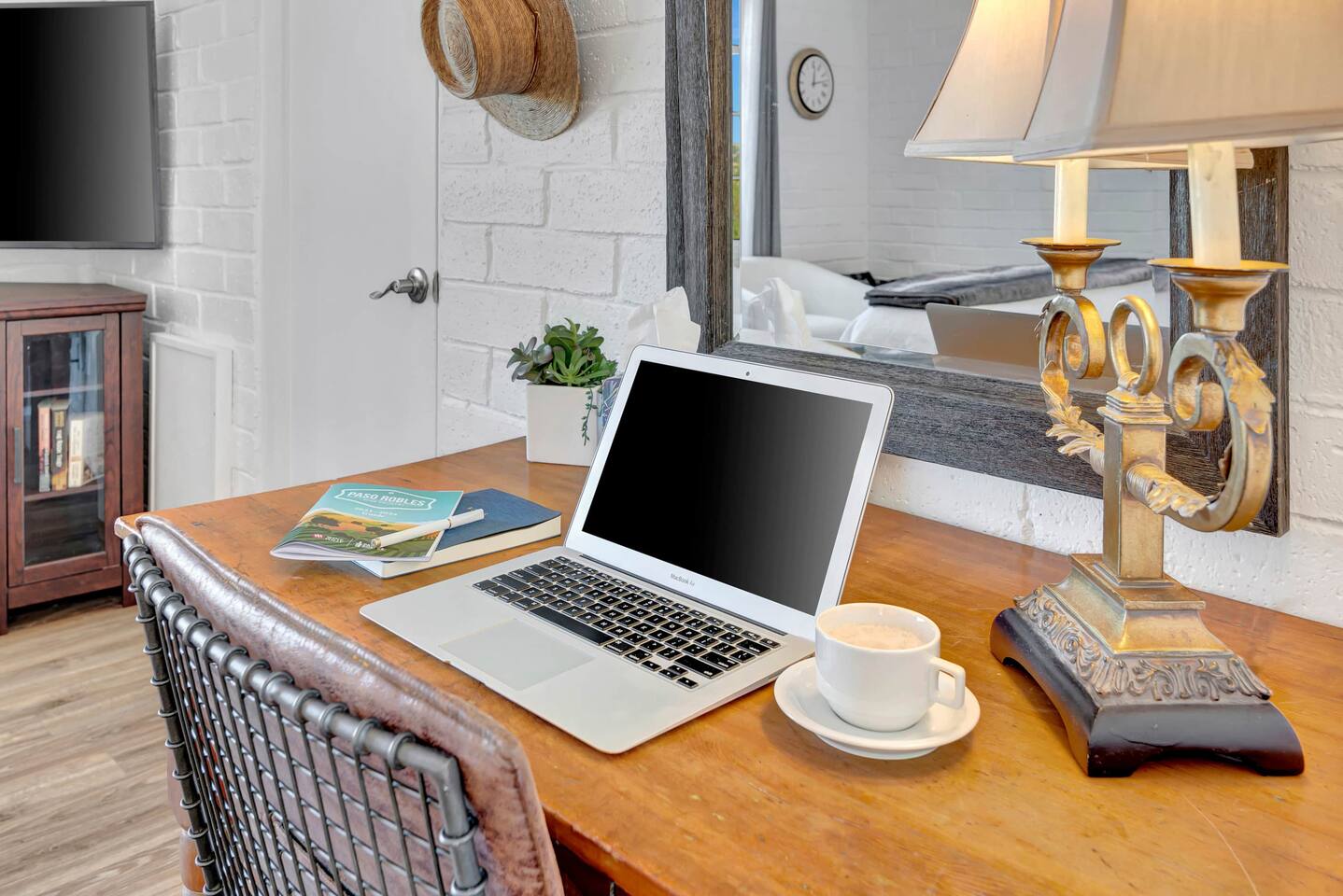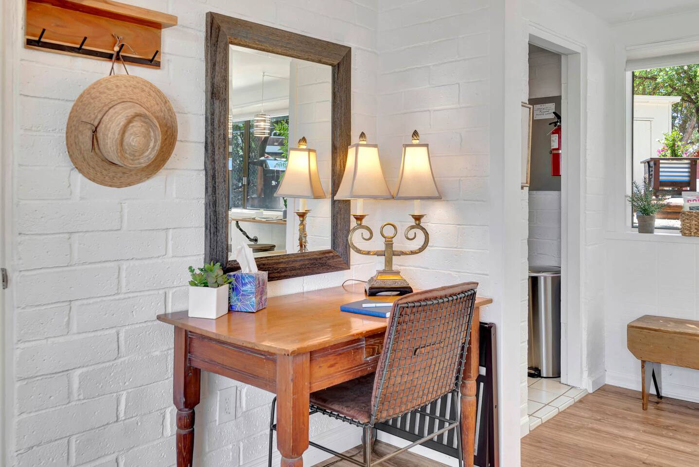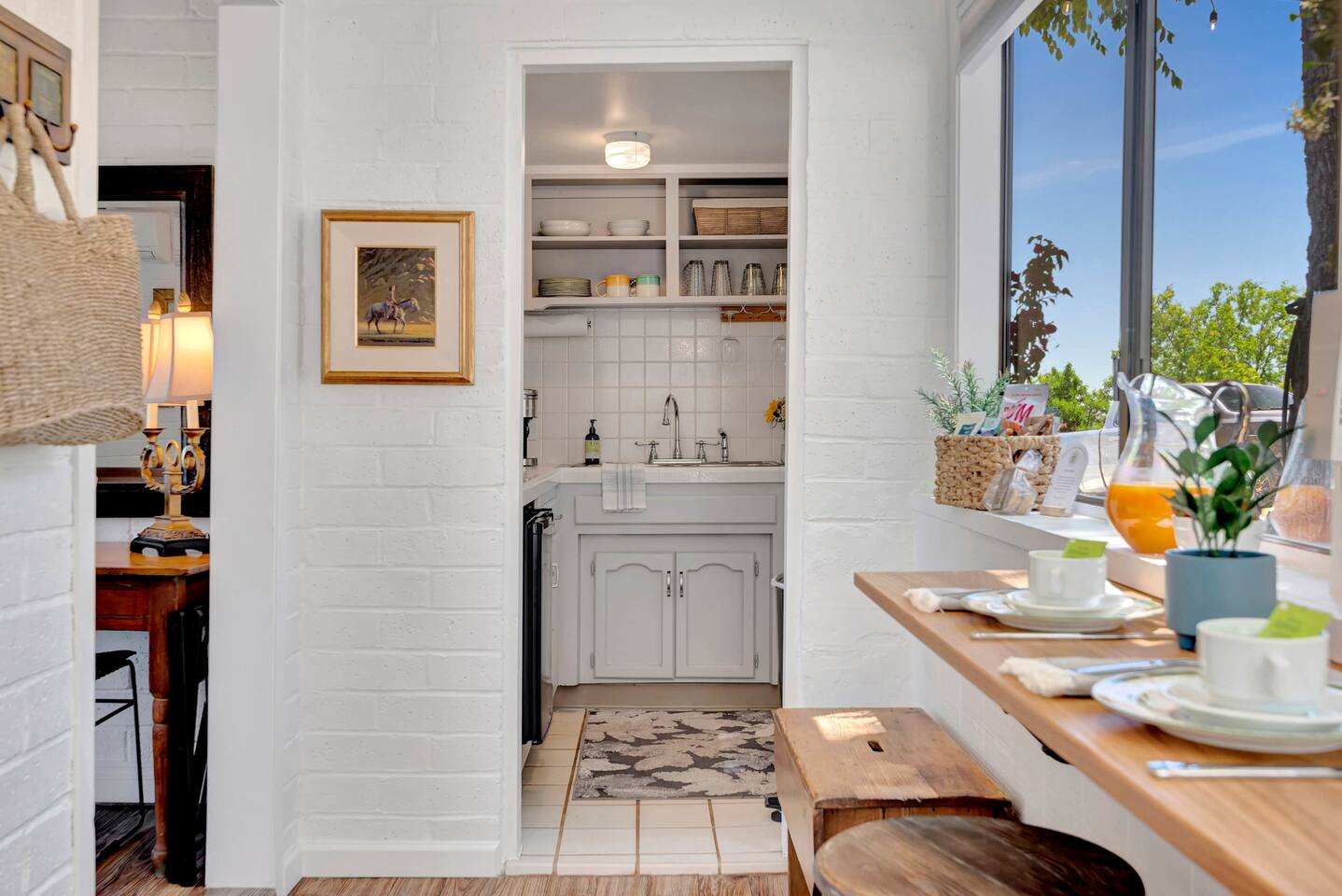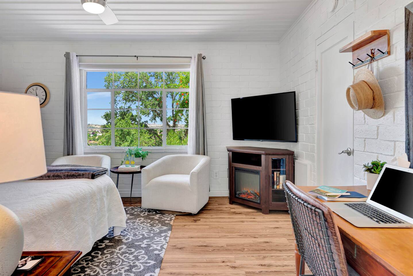 This inviting 1 bedroom cottage features a dedicated bar space for dining, a kitchenette and a bedroom with an attached bathroom. The kitchenette features a hot plate, mini fridge, large sink and all the kitchenware needed to enjoy a meal in. Small appliances include a Keurig coffee maker, microwave, toaster and hot water kettle. Enjoy a cozy breakfast at the dining bar overlooking the serene outdoors. The bedroom has a king size bed, smart TV, a reading nook with two comfy club chairs, a dedicated workspace and ensuite bathroom. The bathroom is equipped with a hair dryer, luxury towels, shampoo/conditioner/body wash, hand soap, makeup remover towels and more. The outdoor space is expansive! Featuring a firepit underneath festive string lights which is the ideal spot to open a bottle of wine or BBQ dinner at the adjacent gas BBQ. Or sit back on the deck with Adirondack chairs or the picnic table overlooking the stunning view from the hilltop. The best place to watch the sunset! Finish the evening with a round of corn hole. Note: No washer/dryer Amenities: Complimentary Wi-Fi, firepit, corn hole, board games and private (gated) parking. Location: This home is located five minutes from the downtown Paso Robles square. A few miles away from the best craft breweries, wine tasting rooms, charming coffee shops, restaurants and local gift shops. Explore all that our town has to offer from the convenience of this home. *Laundromat 2.2 miles away. Pet Policy: We have a strict NO pet policy here. Please leave your furry friends at home. Any guests who do not abide by this rule will be asked to leave or incur a fine of $500. ALL Front Porch Properties include these LUXE amenities: Kitchen: Coffee, creamer, sugar, tea, olive oil, spices, Saran Wrap, foil, Ziploc bags and dish sponge. Bathroom: Shampoo/conditioner, hand soap, body wash, paper products, Q-tips, cotton balls, towels, makeup remover towels, toothbrushes. Bedroom: Linens and extra blankets. Extras: Our curated booklet of Nicole + Tressa's favorite wineries (there are 300+ to explore), restaurants, breweries, coffee shops and activities! Check-in/check-out instructions. *** Keyless door code for an easy check in. You will receive the code via email prior to check-in. We are a local mother/daughter duo who want you to experience the BEST our town has to offer. Please let us know if you need anything at all during your stay. We hope you come and visit again soon! Short-Term Rental Permit No. STR23-0015