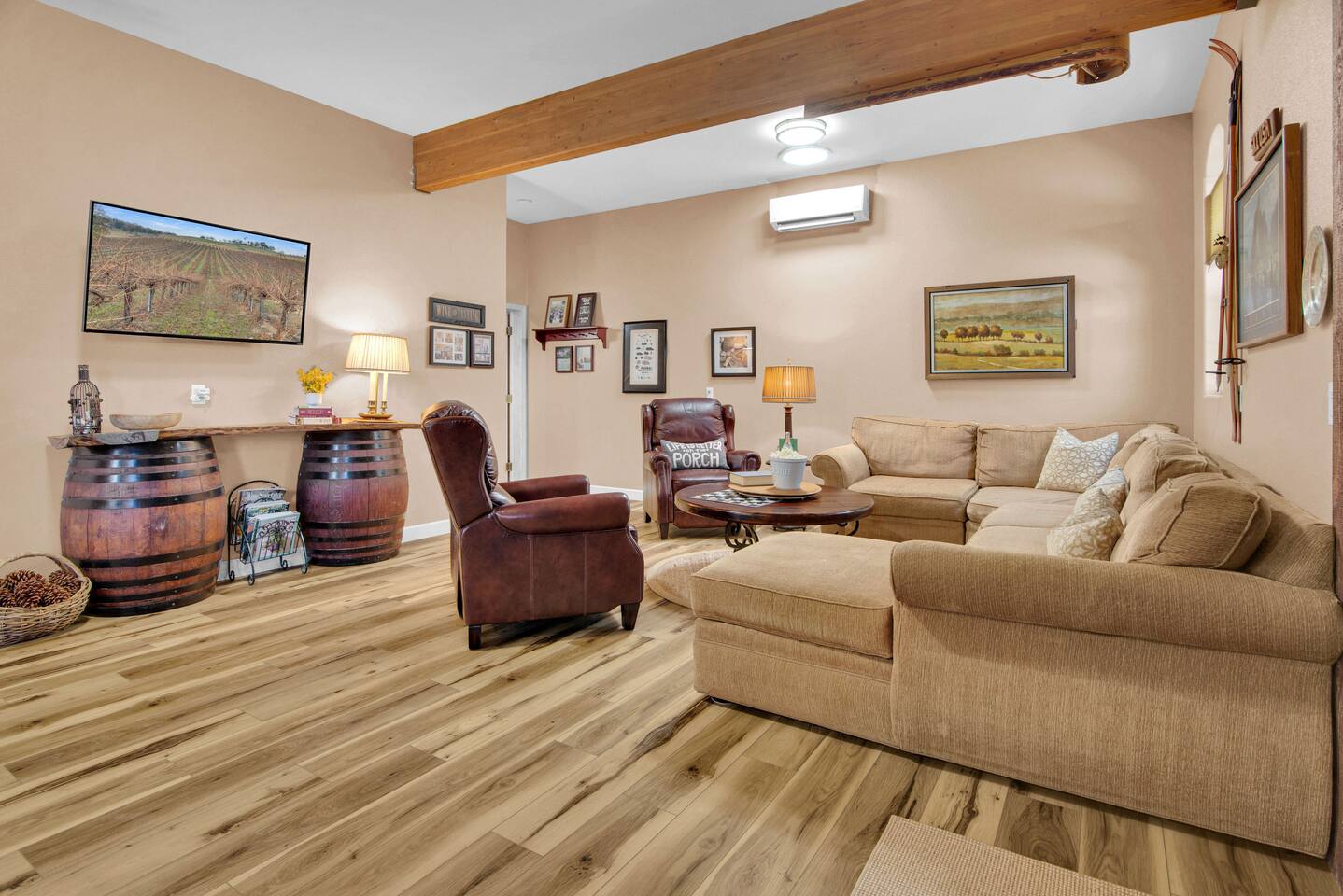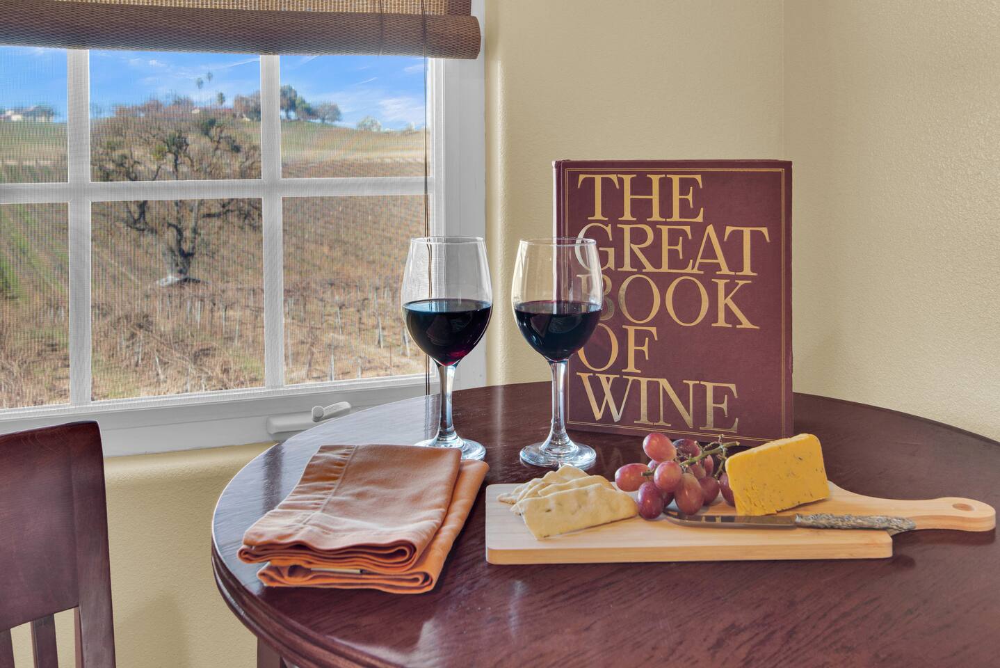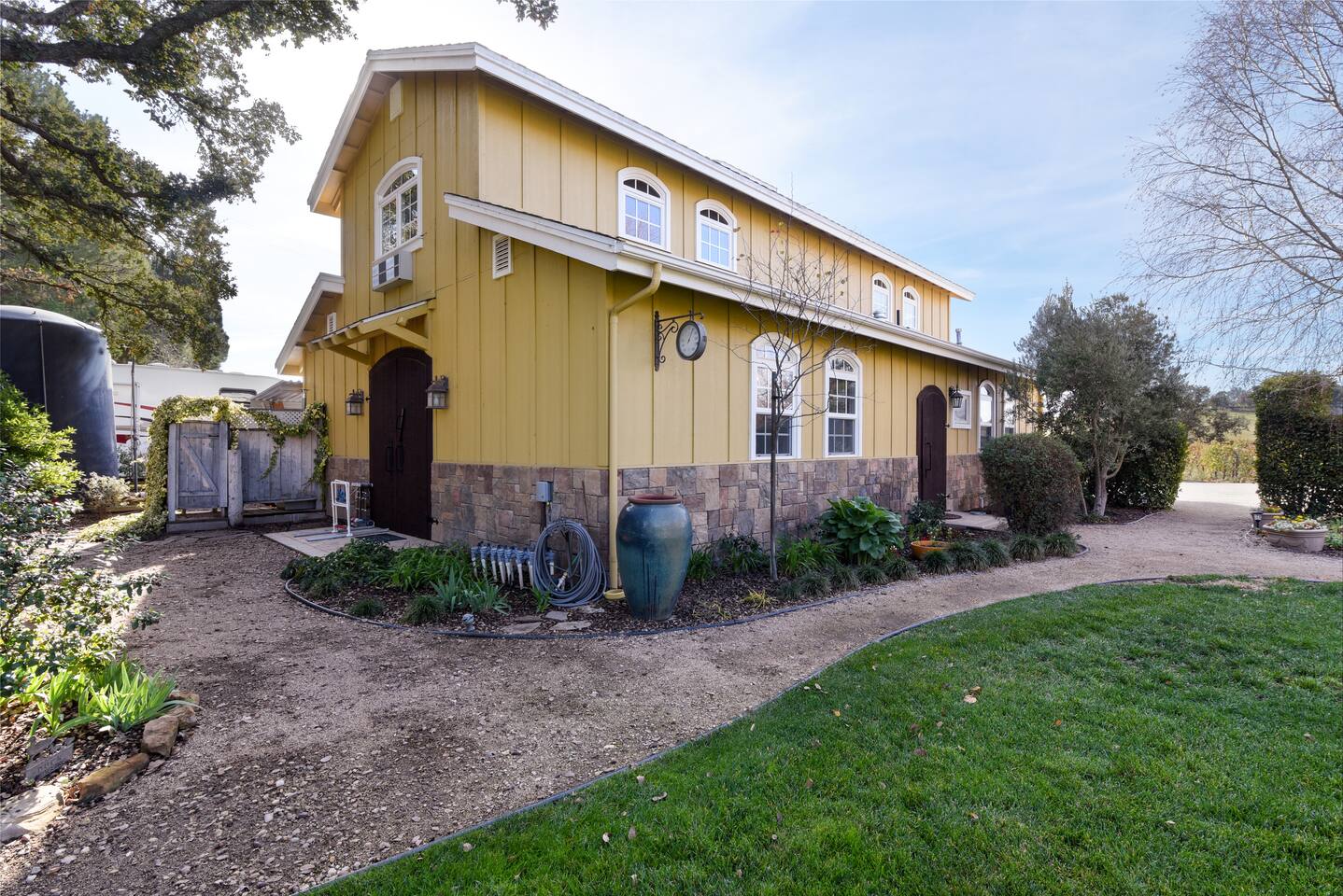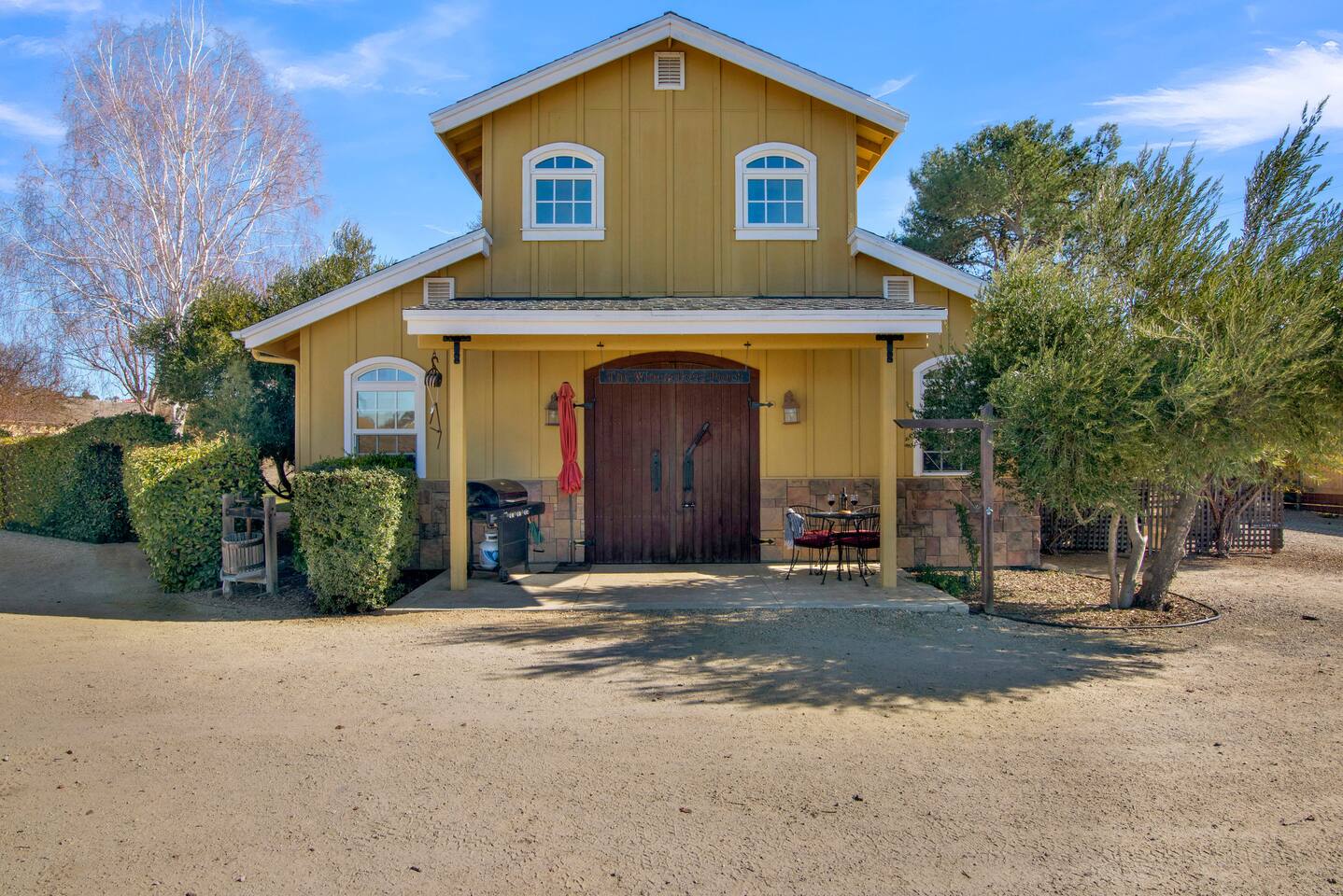 Kitchen: Walk through the barn doors into the first floor living area. The kitchen is equipped with stainless steel appliances, all of the essentials needed to prepare a gourmet meal and even a dedicated workspace. Small appliances include a Keurig Duo coffee maker, French press, microwave, toaster, hot water kettle, blender and so much more. Living Area: Adjacent to the kitchen, the dining space is set for four guests while the living room features a large, cozy couch, two reclining chairs and 50” Smart TV for guests to enjoy. Amenities abound including numerous books and board games. Bedrooms/bathrooms: Head upstairs to the spacious primary bedroom which has a luxurious queen size bed with upscale linens, kitchenette with a microwave plus mini fridge and ensuite bathroom with a shower/tub combo. Enjoy a private dinner at your own dining table or adjourn to the cozy fireplace. Upstairs you will also find a quaint guest bedroom with a queen size bed, upscale linens and table for two. There is a reading chair to enjoy some relaxing down time as well. The guest bathroom is located downstairs on the first floor with a step-in shower. Each bathroom is equipped with hair dryers, luxury towels, shampoo/conditioner/soap, hand soap, makeup towels, and more. Outside: As you exit outside onto your front porch and overlook the sprawling vineyard landscape, enjoy a glass of Bordeaux style wine made from Francis James Vineyard. Experience al fresco dining while BBQing as the sun sets over the hillside. Wander over to the outdoor firepit for an evening under the stars, play a round of horseshoes or swing under a majestic oak tree. This rental offers a one of a kind experience in wine country where you can stroll through the rows of a working vineyard just steps from your front door. (Ask us about our frequent visitor discount when you book a second time!) ***This property has an amazing history as a former bed and breakfast for 14 years and also has been a successful 5-star vacation rental for the last 7 years. Items to note: -Property owners live in the main home on the property. -There is no washer/dryer onsite. -NO parties. Not to be used as a wedding event space in any capacity. -Maximum 4 guests at property. No additional guests allowed. -NO smoking. -The property is fully gated. Amenities: Complimentary Wi-Fi, access to stroll the vineyard rows, BBQ, horseshoe pit, fire pit, corn hole, board games, books and private (gated) parking. Location: This home is a quick 12 minute drive to the downtown Paso Robles square. Close to the best craft breweries, wine tasting rooms, charming coffee shops, restaurants and local gift shops. Explore all that our town has to offer from the convenience of this vineyard home. Pet Policy: We have a strict NO pet policy here. Please leave your furry friends at home. Any guests who do not abide by this rule will be asked to leave or incur a fine of $500. ALL Front Porch Properties include these LUXE amenities: Kitchen: Coffee, creamer, sugar, tea, olive oil, spices, Saran Wrap, foil, Ziploc bags, dish sponge and paper towels. Bathroom: Shampoo/conditioner, hand soap, paper products, Q-tips, cotton balls, towels, makeup towels, toothbrushes. Bedroom: Linens and extra blankets. Extras: Our curated booklet of Nicole + Tressa's favorite wineries (there are 300+ to explore), restaurants, breweries, coffee shops and activities! We are a local mother/daughter duo who want you to experience the BEST our town has to offer. Please let us know if you need anything at all during your stay. We hope you come and visit again soon! County License #: 680876