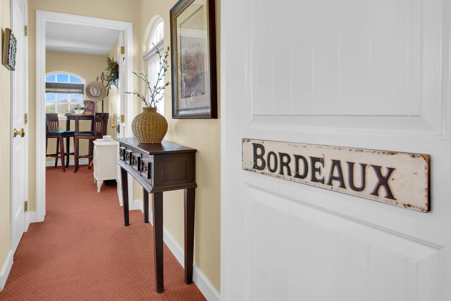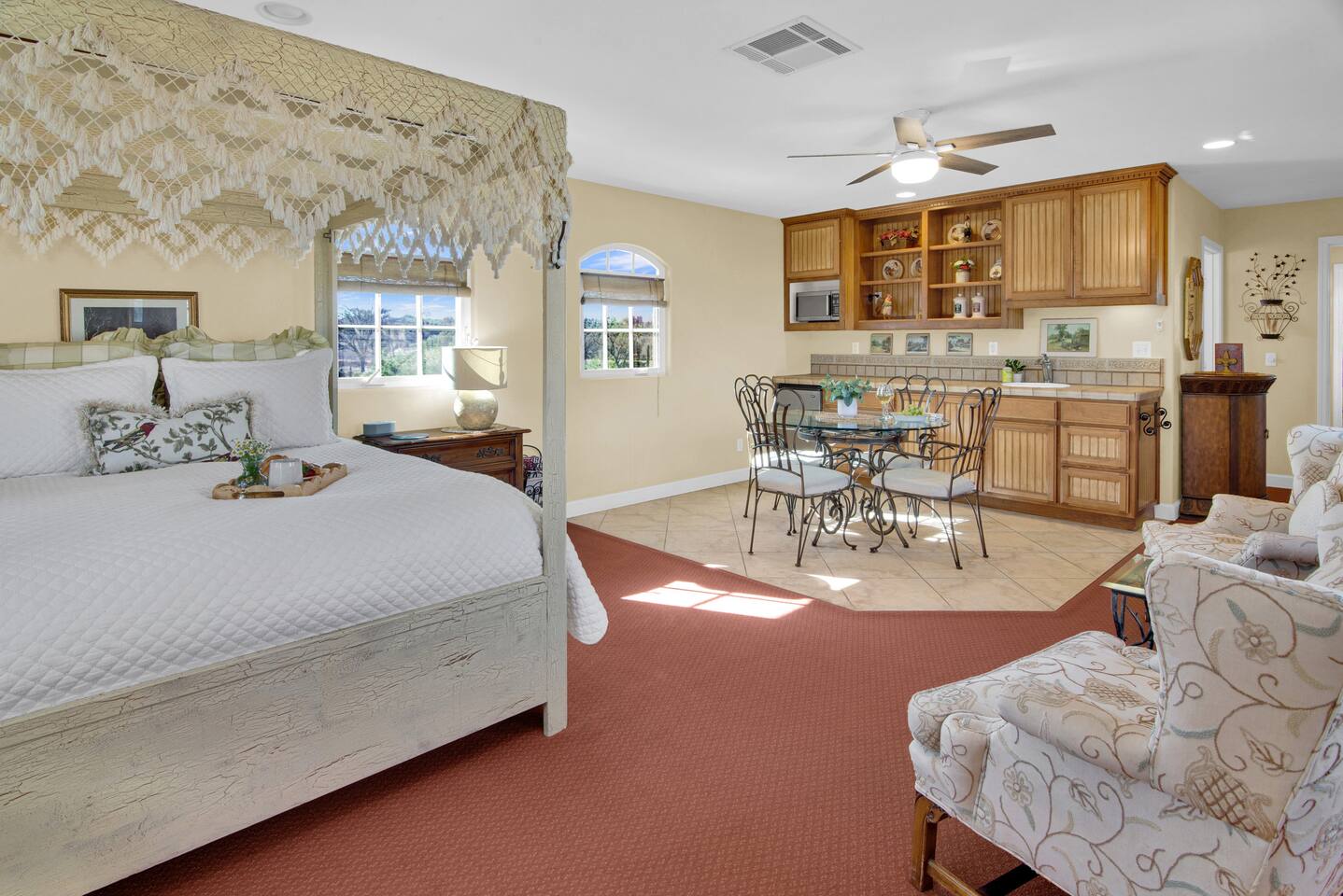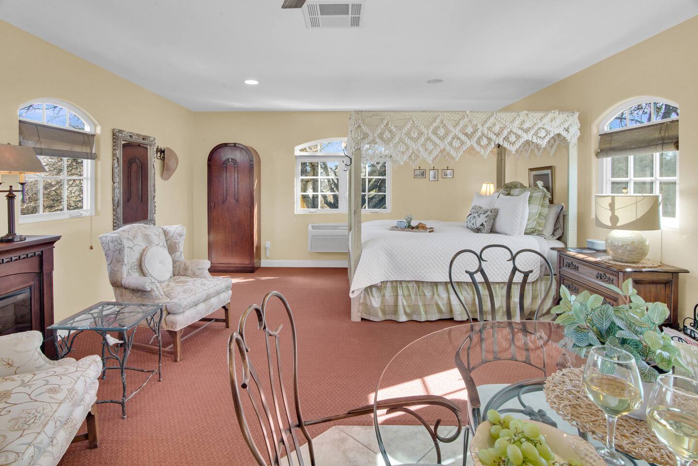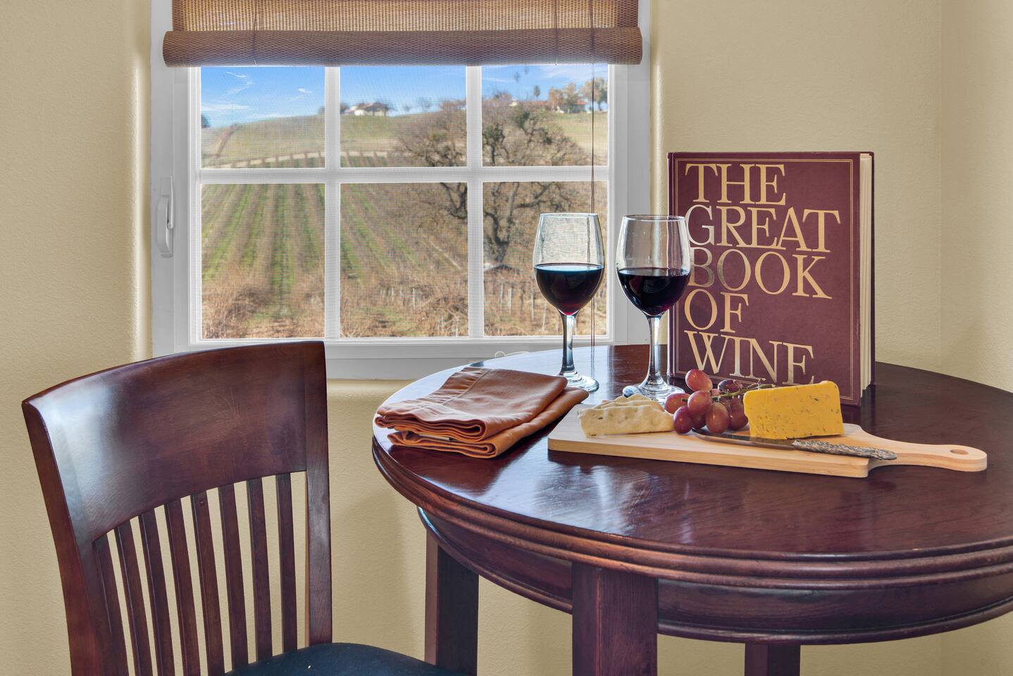 Kitchen: Walk through the barn doors into the first floor living area. The kitchen is equipped with stainless steel appliances, all of the essentials needed to prepare a gourmet meal and even a dedicated workspace. Small appliances include a Keurig Duo coffee maker, French press, microwave, toaster, hot water kettle, blender and so much more. Living Area: Adjacent to the kitchen, the dining space is set for four guests while the living room features a large, cozy couch, two reclining chairs and 50” Smart TV for guests to enjoy. Amenities abound including numerous books and board games. Bedrooms/bathrooms: Head upstairs to the spacious primary bedroom which has a luxurious queen size bed with upscale linens, kitchenette with a microwave plus mini fridge and ensuite bathroom with a shower/tub combo. Enjoy a private dinner at your own dining table or adjourn to the cozy fireplace. Upstairs you will also find a quaint guest bedroom with a queen size bed, upscale linens and table for two. There is a reading chair to enjoy some relaxing down time as well. The guest bathroom is located downstairs on the first floor with a step-in shower. Each bathroom is equipped with hair dryers, luxury towels, shampoo/conditioner/soap, hand soap, makeup towels, and more. Outside: As you exit outside onto your front porch and overlook the sprawling vineyard landscape, enjoy a glass of Bordeaux style wine made from Francis James Vineyard. Experience al fresco dining while BBQing as the sun sets over the hillside. Wander over to the outdoor firepit for an evening under the stars, play a round of horseshoes or swing under a majestic oak tree. This rental offers a one of a kind experience in wine country where you can stroll through the rows of a working vineyard just steps from your front door. (Ask us about our frequent visitor discount when you book a second time!) ***This property has an amazing history as a former bed and breakfast for 14 years and also has been a successful 5-star vacation rental for the last 7 years. Items to note: -Property owners live in the main home on the property. -There is no washer/dryer onsite. -NO parties. Not to be used as a wedding event space in any capacity. -Maximum 4 guests at property. No additional guests allowed. -NO smoking. -The property is fully gated. Amenities: Complimentary Wi-Fi, access to stroll the vineyard rows, BBQ, horseshoe pit, fire pit, corn hole, board games, books and private (gated) parking. Location: This home is a quick 12 minute drive to the downtown Paso Robles square. Close to the best craft breweries, wine tasting rooms, charming coffee shops, restaurants and local gift shops. Explore all that our town has to offer from the convenience of this vineyard home. Pet Policy: We have a strict NO pet policy here. Please leave your furry friends at home. Any guests who do not abide by this rule will be asked to leave or incur a fine of $500. ALL Front Porch Properties include these LUXE amenities: Kitchen: Coffee, creamer, sugar, tea, olive oil, spices, Saran Wrap, foil, Ziploc bags, dish sponge and paper towels. Bathroom: Shampoo/conditioner, hand soap, paper products, Q-tips, cotton balls, towels, makeup towels, toothbrushes. Bedroom: Linens and extra blankets. Extras: Our curated booklet of Nicole + Tressa's favorite wineries (there are 300+ to explore), restaurants, breweries, coffee shops and activities! We are a local mother/daughter duo who want you to experience the BEST our town has to offer. Please let us know if you need anything at all during your stay. We hope you come and visit again soon! County License #: 680876