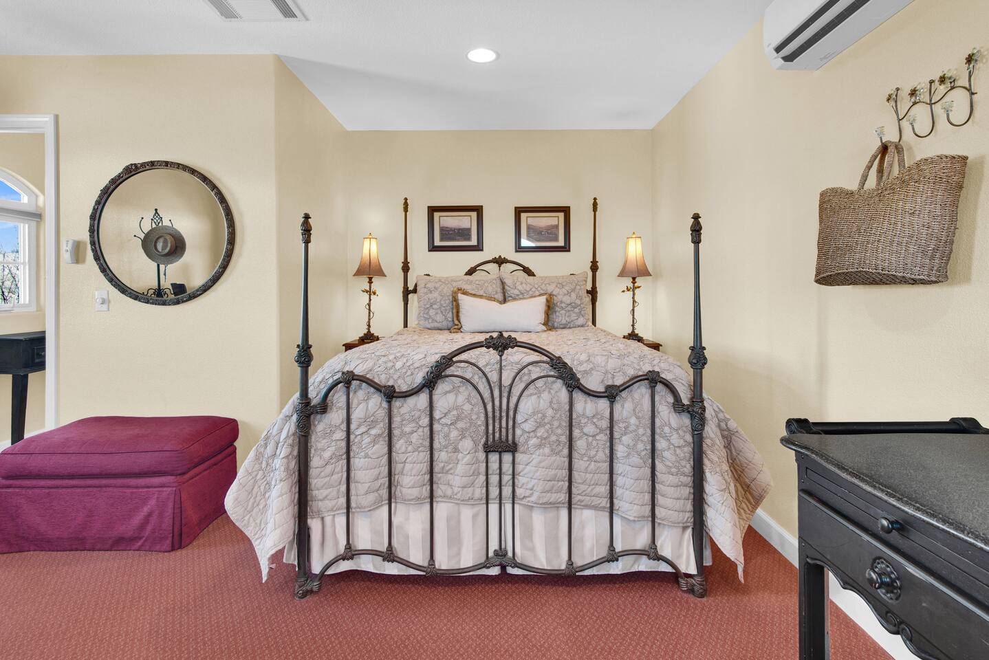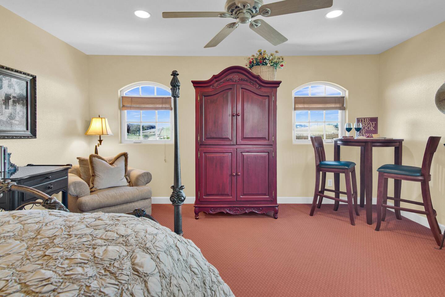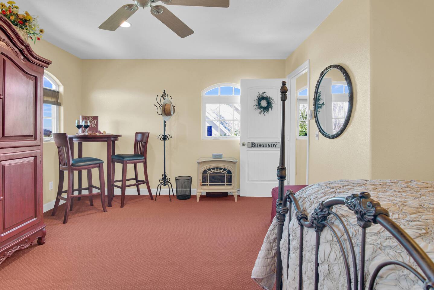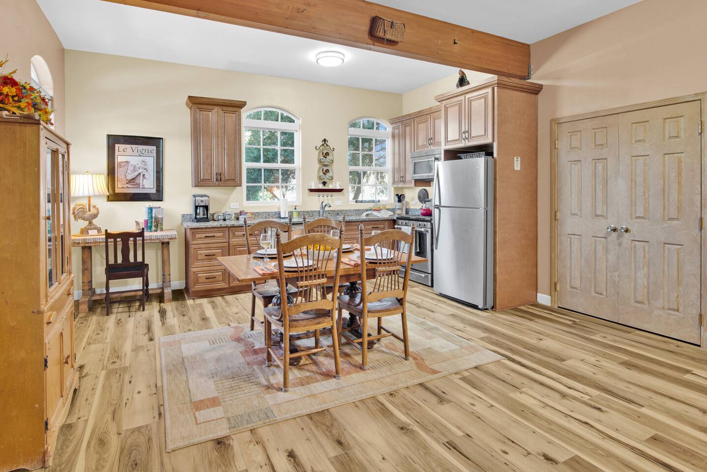 Kitchen: Walk through the barn doors into the first floor living area. The kitchen is equipped with stainless steel appliances, all of the essentials needed to prepare a gourmet meal and even a dedicated workspace. Small appliances include a Keurig Duo coffee maker, French press, microwave, toaster, hot water kettle, blender and so much more. Living Area: Adjacent to the kitchen, the dining space is set for four guests while the living room features a large, cozy couch, two reclining chairs and 50” Smart TV for guests to enjoy. Amenities abound including numerous books and board games. Bedrooms/bathrooms: Head upstairs to the spacious primary bedroom which has a luxurious queen size bed with upscale linens, kitchenette with a microwave plus mini fridge and ensuite bathroom with a shower/tub combo. Enjoy a private dinner at your own dining table or adjourn to the cozy fireplace. Upstairs you will also find a quaint guest bedroom with a queen size bed, upscale linens and table for two. There is a reading chair to enjoy some relaxing down time as well. The guest bathroom is located downstairs on the first floor with a step-in shower. Each bathroom is equipped with hair dryers, luxury towels, shampoo/conditioner/soap, hand soap, makeup towels, and more. Outside: As you exit outside onto your front porch and overlook the sprawling vineyard landscape, enjoy a glass of Bordeaux style wine made from Francis James Vineyard. Experience al fresco dining while BBQing as the sun sets over the hillside. Wander over to the outdoor firepit for an evening under the stars, play a round of horseshoes or swing under a majestic oak tree. This rental offers a one of a kind experience in wine country where you can stroll through the rows of a working vineyard just steps from your front door. (Ask us about our frequent visitor discount when you book a second time!) ***This property has an amazing history as a former bed and breakfast for 14 years and also has been a successful 5-star vacation rental for the last 7 years. Items to note: -Property owners live in the main home on the property. -There is no washer/dryer onsite. -NO parties. Not to be used as a wedding event space in any capacity. -Maximum 4 guests at property. No additional guests allowed. -NO smoking. -The property is fully gated. Amenities: Complimentary Wi-Fi, access to stroll the vineyard rows, BBQ, horseshoe pit, fire pit, corn hole, board games, books and private (gated) parking. Location: This home is a quick 12 minute drive to the downtown Paso Robles square. Close to the best craft breweries, wine tasting rooms, charming coffee shops, restaurants and local gift shops. Explore all that our town has to offer from the convenience of this vineyard home. Pet Policy: We have a strict NO pet policy here. Please leave your furry friends at home. Any guests who do not abide by this rule will be asked to leave or incur a fine of $500. ALL Front Porch Properties include these LUXE amenities: Kitchen: Coffee, creamer, sugar, tea, olive oil, spices, Saran Wrap, foil, Ziploc bags, dish sponge and paper towels. Bathroom: Shampoo/conditioner, hand soap, paper products, Q-tips, cotton balls, towels, makeup towels, toothbrushes. Bedroom: Linens and extra blankets. Extras: Our curated booklet of Nicole + Tressa's favorite wineries (there are 300+ to explore), restaurants, breweries, coffee shops and activities! We are a local mother/daughter duo who want you to experience the BEST our town has to offer. Please let us know if you need anything at all during your stay. We hope you come and visit again soon! County License #: 680876