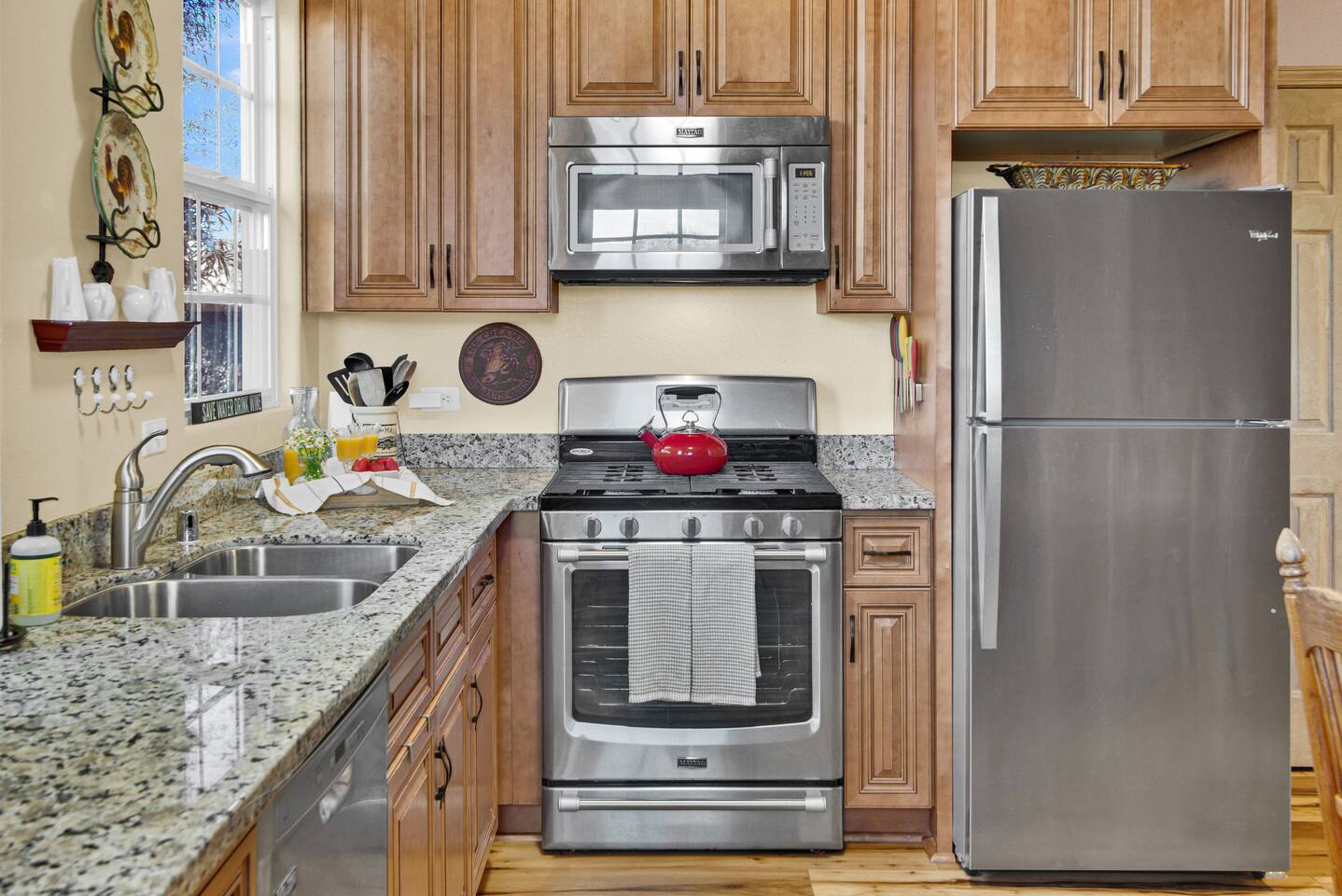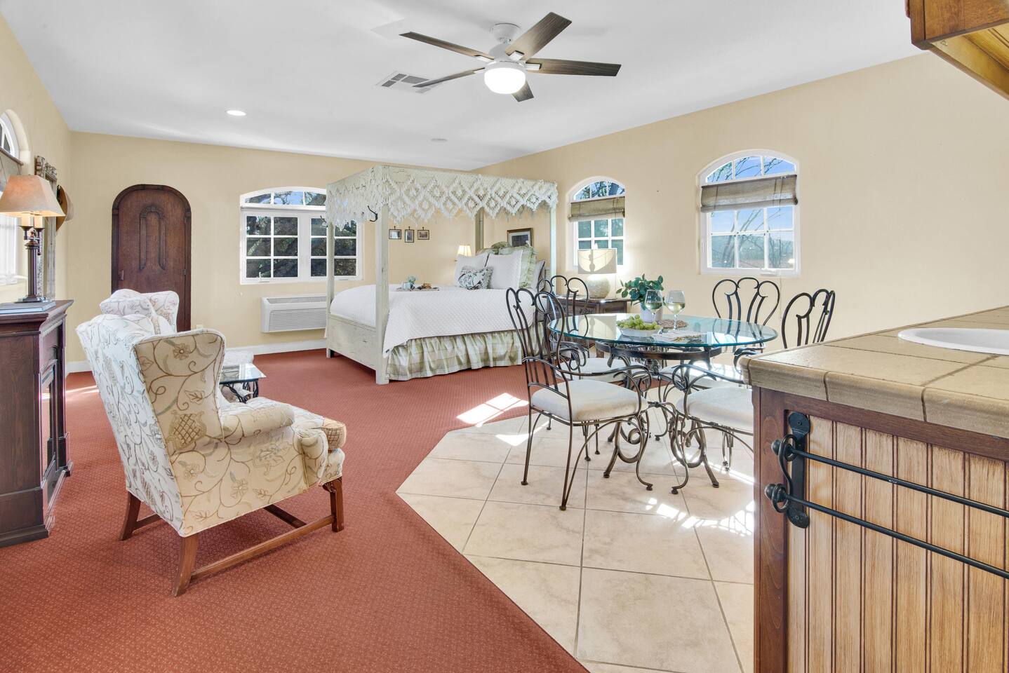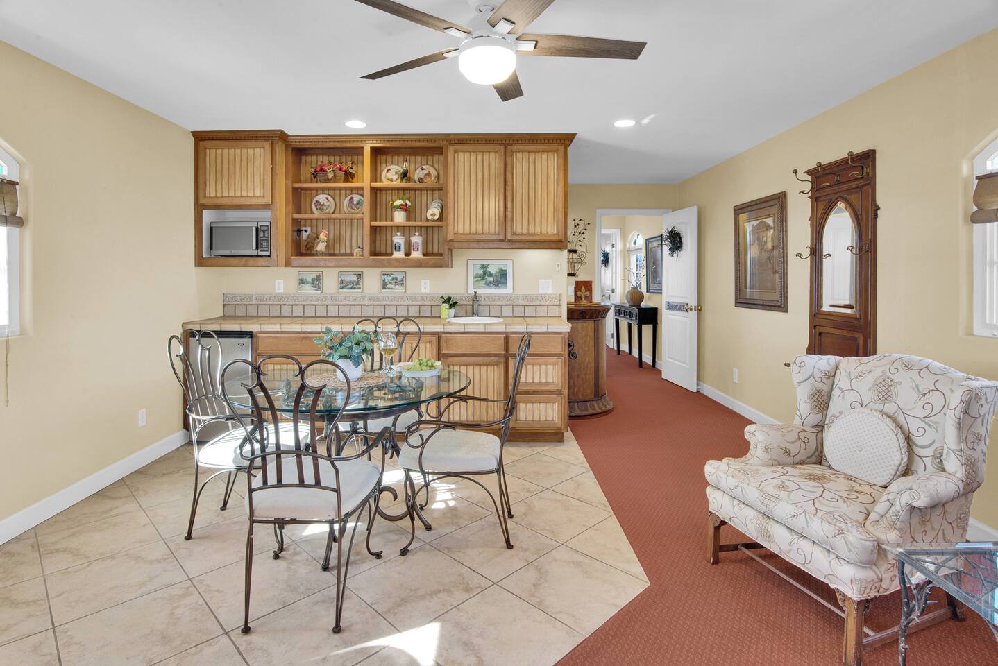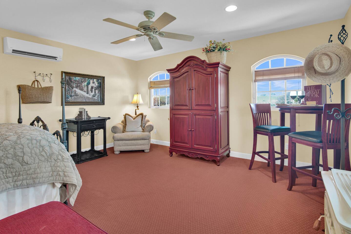 Kitchen: Walk through the barn doors into the first floor living area. The kitchen is equipped with stainless steel appliances, all of the essentials needed to prepare a gourmet meal and even a dedicated workspace. Small appliances include a Keurig Duo coffee maker, French press, microwave, toaster, hot water kettle, blender and so much more. Living Area: Adjacent to the kitchen, the dining space is set for four guests while the living room features a large, cozy couch, two reclining chairs and 50” Smart TV for guests to enjoy. Amenities abound including numerous books and board games. Bedrooms/bathrooms: Head upstairs to the spacious primary bedroom which has a luxurious queen size bed with upscale linens, kitchenette with a microwave plus mini fridge and ensuite bathroom with a shower/tub combo. Enjoy a private dinner at your own dining table or adjourn to the cozy fireplace. Upstairs you will also find a quaint guest bedroom with a queen size bed, upscale linens and table for two. There is a reading chair to enjoy some relaxing down time as well. The guest bathroom is located downstairs on the first floor with a step-in shower. Each bathroom is equipped with hair dryers, luxury towels, shampoo/conditioner/soap, hand soap, makeup towels, and more. Outside: As you exit outside onto your front porch and overlook the sprawling vineyard landscape, enjoy a glass of Bordeaux style wine made from Francis James Vineyard. Experience al fresco dining while BBQing as the sun sets over the hillside. Wander over to the outdoor firepit for an evening under the stars, play a round of horseshoes or swing under a majestic oak tree. This rental offers a one of a kind experience in wine country where you can stroll through the rows of a working vineyard just steps from your front door. (Ask us about our frequent visitor discount when you book a second time!) ***This property has an amazing history as a former bed and breakfast for 14 years and also has been a successful 5-star vacation rental for the last 7 years. Items to note: -Property owners live in the main home on the property. -There is no washer/dryer onsite. -NO parties. Not to be used as a wedding event space in any capacity. -Maximum 4 guests at property. No additional guests allowed. -NO smoking. -The property is fully gated. Amenities: Complimentary Wi-Fi, access to stroll the vineyard rows, BBQ, horseshoe pit, fire pit, corn hole, board games, books and private (gated) parking. Location: This home is a quick 12 minute drive to the downtown Paso Robles square. Close to the best craft breweries, wine tasting rooms, charming coffee shops, restaurants and local gift shops. Explore all that our town has to offer from the convenience of this vineyard home. Pet Policy: We have a strict NO pet policy here. Please leave your furry friends at home. Any guests who do not abide by this rule will be asked to leave or incur a fine of $500. ALL Front Porch Properties include these LUXE amenities: Kitchen: Coffee, creamer, sugar, tea, olive oil, spices, Saran Wrap, foil, Ziploc bags, dish sponge and paper towels. Bathroom: Shampoo/conditioner, hand soap, paper products, Q-tips, cotton balls, towels, makeup towels, toothbrushes. Bedroom: Linens and extra blankets. Extras: Our curated booklet of Nicole + Tressa's favorite wineries (there are 300+ to explore), restaurants, breweries, coffee shops and activities! We are a local mother/daughter duo who want you to experience the BEST our town has to offer. Please let us know if you need anything at all during your stay. We hope you come and visit again soon! County License #: 680876