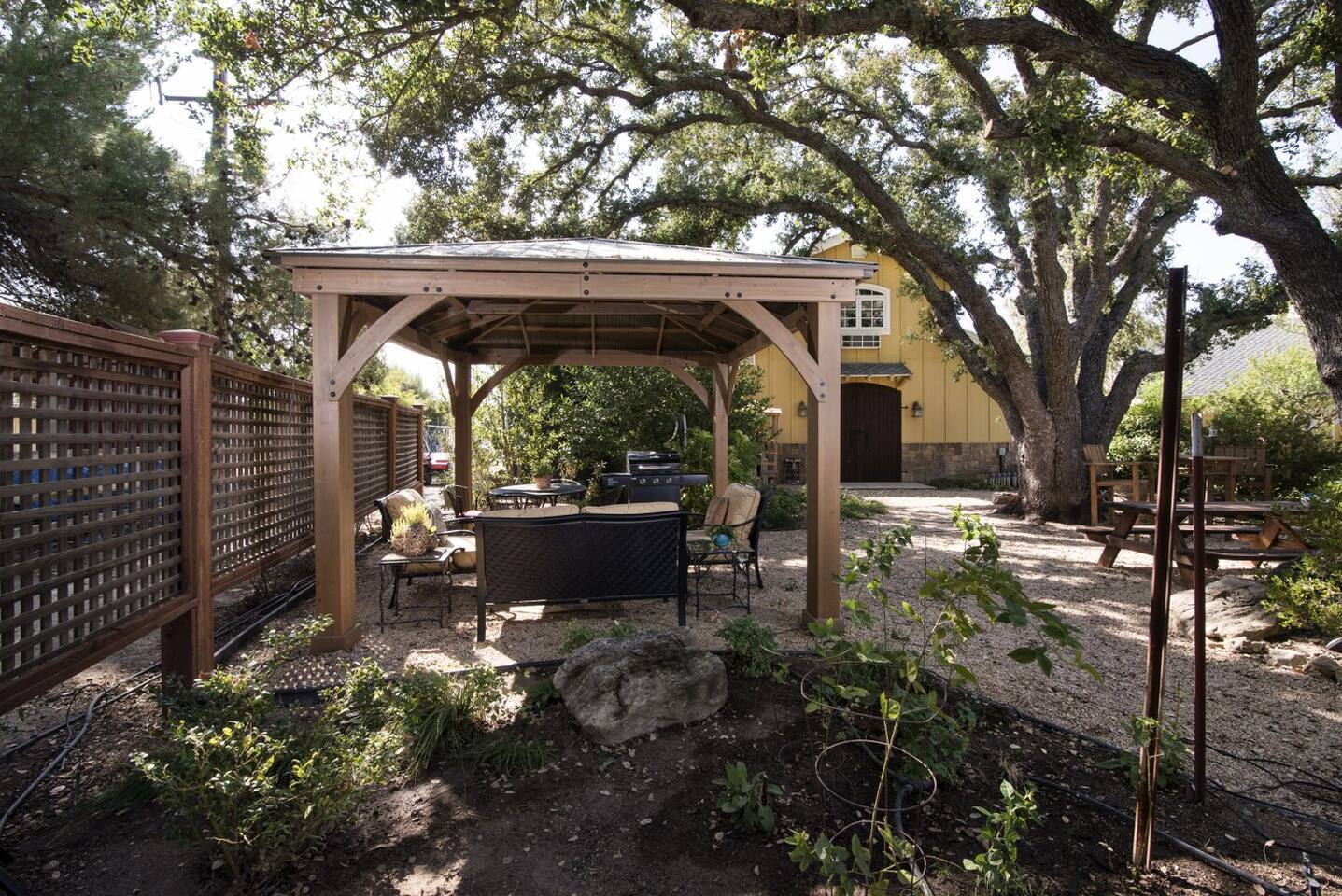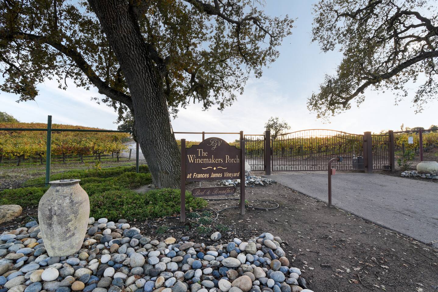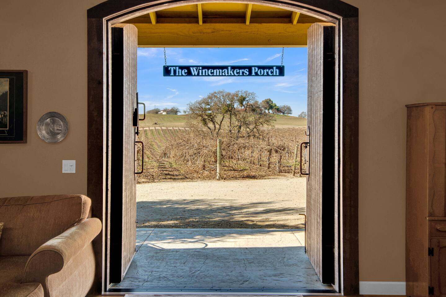 Stay on a Vineyard~ The Winemakers Porch is tucked away in the beautiful rolling countryside of Paso Robles. A short drive to the heart of downtown, this charming barn-to-abode is perched on the hillside of Francis James Vineyard. This wine country retreat offers unparalleled views of the sun-drenched grapevines and dotted oak trees throughout. Open the barn doors and invite the outside in as you settle into your new home away from home in this 2 bedroom, 2 bath house. Sleeps 4 guests.